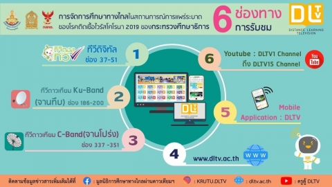 6 ช่องทางการรับชม การจัดการศึกษาทางไกลในสถานการณ์การแพร่ระบาดของโรคติดเชื้อไวรัสโคโรนา 2019 ของกระทรวงศึกษาธิการ