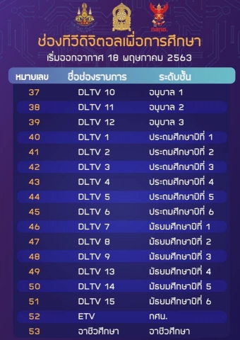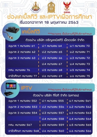 ช่องทางการรับชม "การจัดการศึกษาทางไกลทางโทรทัศน์ระบบดิจิทัล ในสถานการณ์การแพร่ระบาดของโรคติดเชื้อไวรัสโคโรนา 2019 (COVID-19)"